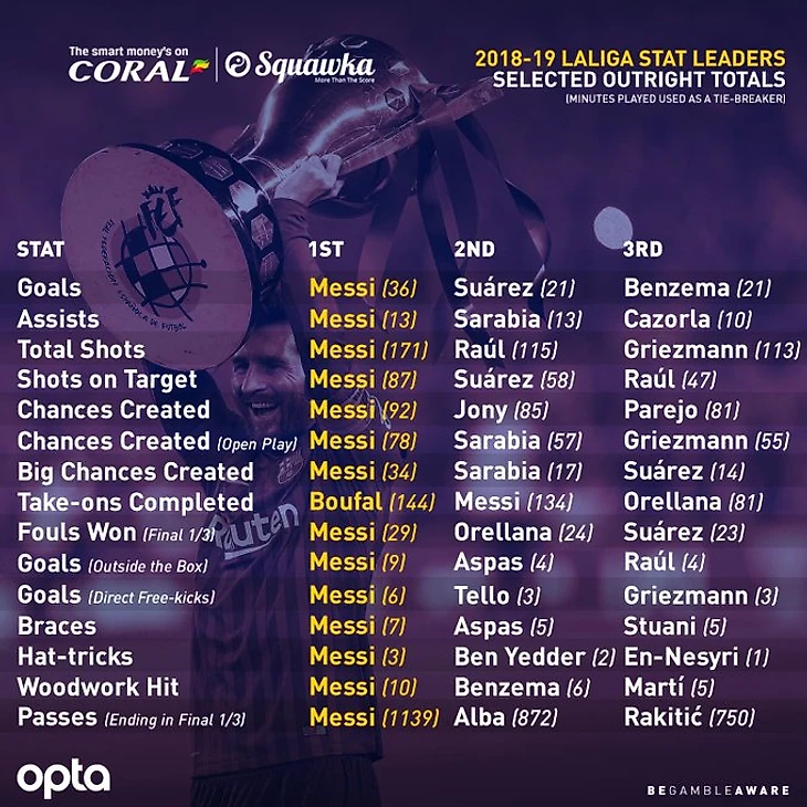 Лионель Месси - лидер по всем ключевым показателям Ла Лиги сезона 2018/19