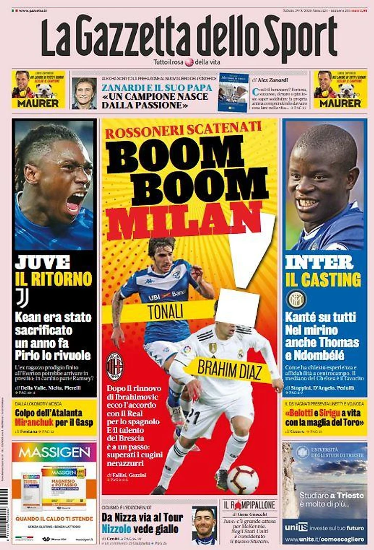 А вот вторым и третьим реальными трансферами "Милана" (после Калулу) могут стать вингер "Реала" Браим Диас и хавбек "Брешии" Сандро Тонали.