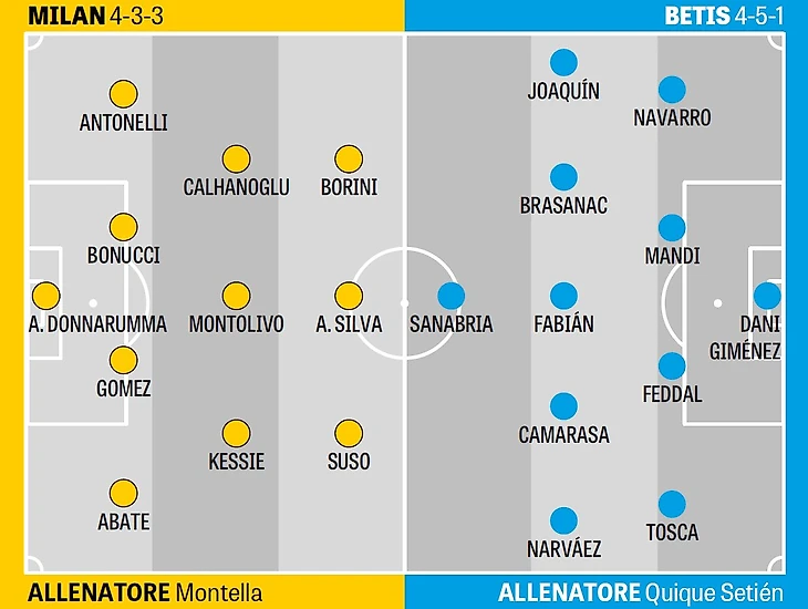 В грядущей встрече Монтелла предоставит отдых ряду игроков: с «Бетисом» мы не увидим Джиджо Доннарумму, Матео Мусаккио, Рикардо Родригеса, Андреа Конти, Джакомо Бонавентуру и М’Байе Ньянга.