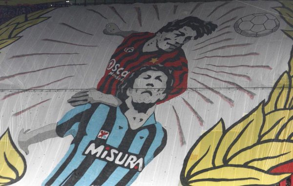 Затем было удаление Манчини и очень волнительный момент. Я говорю о назначенном пенальти… Так как это было на противоположной части поля, то было вообще не понятно за что. Все просто, мягко говоря, офигели. Казалось, что всё. Не опять, а снова тянут "Интер" и нас ждёт очередная ничья. Но не тут-то было. Вот момент попадания в штангу был виден на все 100%, и курва просто взорвалась в прямом и переносном смысле. Это было нечто. Справедливость восторжествовала. Оставалось только добивать, чем "Милан" и занялся. Приятно вдвойне, что мячи влетали в ближние к нам ворота. В какой-то момент очень захотелось, чтобы вишенкой на торте стал забитый мяч Балотелли. Уж очень недоброжелательно встречали его тифози "Интера". Жаль, что его голевой момент так и остался моментом. А тем временем, матч закончился и счастье наполнило наши сердца. Команда праздновала победу вместе с фанатами. Было видно, что большей части игроков “Ки нон салта э нерадзурро хей-хей” приносит удовольствие так же, как и нам.