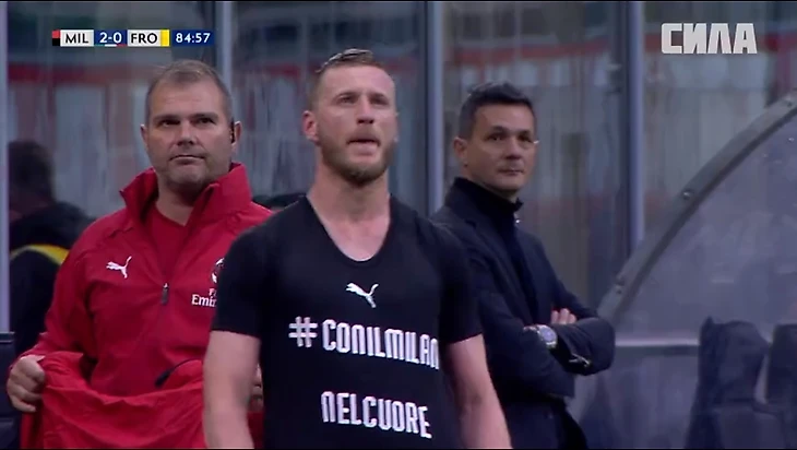 Надпись на футболке: "С "Миланом" в сердце".