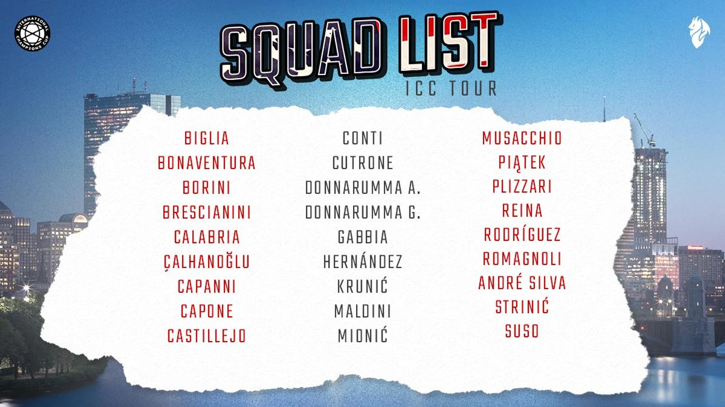P.S. первый матч "Милан" проведет с "Баварией" 24 июля, затем с "Бенфикой" 28 июля, и последний 3 августа против "Манчестер Юнайтед".