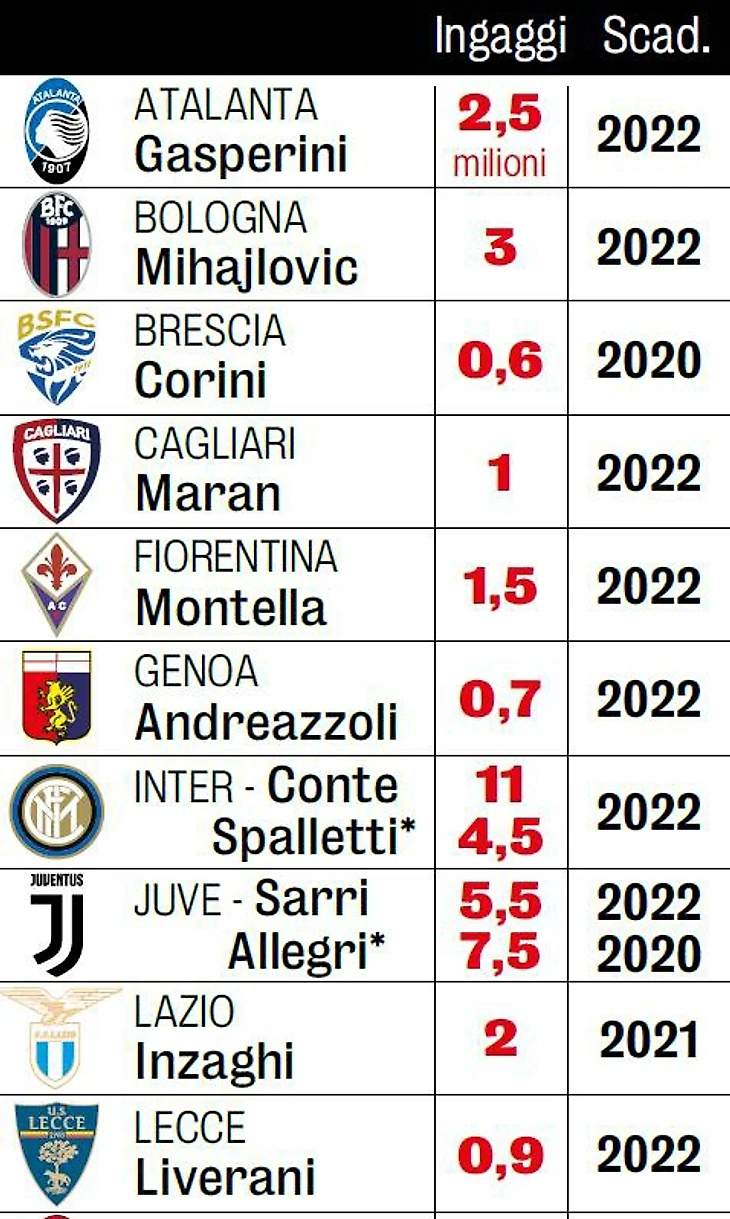La Gazzetta dello Sport: Зарплаты тренеров команд Серии А