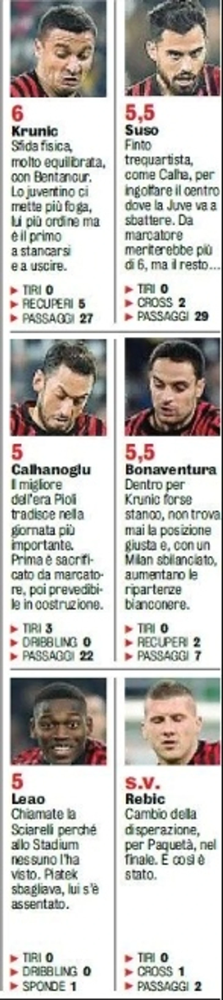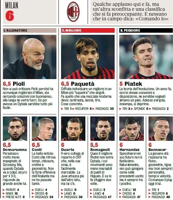 La Gazzetta dello Sport: оценки игрокам «Милана» за матч 12-ого тура Серии А с «Ювентусом»