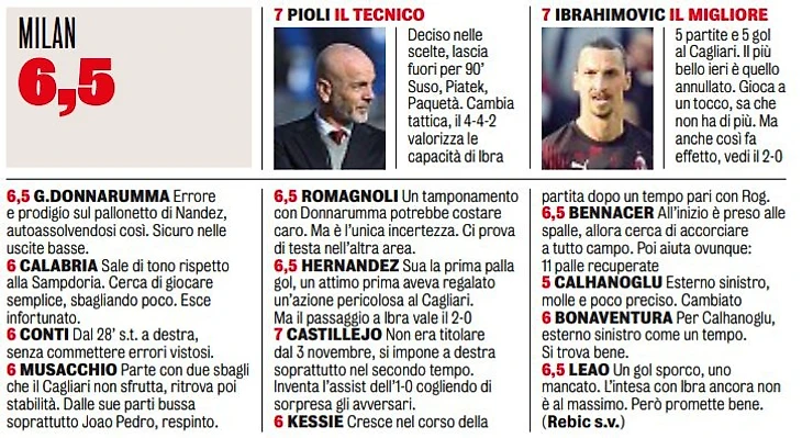 Оценки игрокам «Милана» от Gazzetta dello Sport за матч с «Кальяри» + ПЕРЕВОД