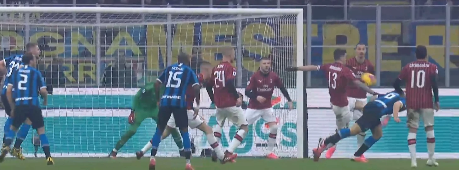 Роковой гол для "Милана" состоялся на 70 минуте матча, после розыгрыша игроками "Интера" углового. В этом моменте разбирать просто нечего: все эксперты сходятся во мнении, что вина в пропущенном мяче целиком и полностью лежит на совести Алессио Романьоли. У Доннаруммы не было шансов от слова совсем.