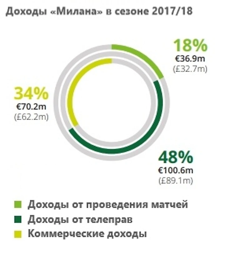 Вот так выглядят доходы «Милана» за сезон 2017/18 в детальном отчете от Deloitte: