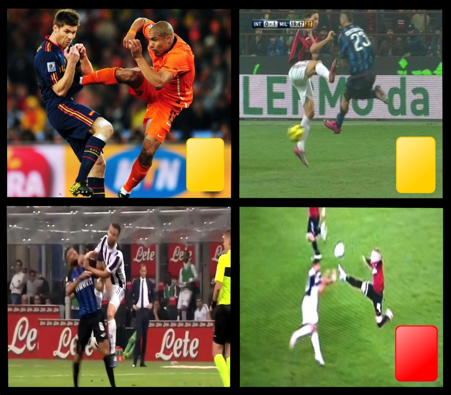 1. Финал ЧМ-2010. Найджел де Йонг вырубает Хаби Алонсо ударом выпрямленной ногой прямиком в грудь - желтая карточка;