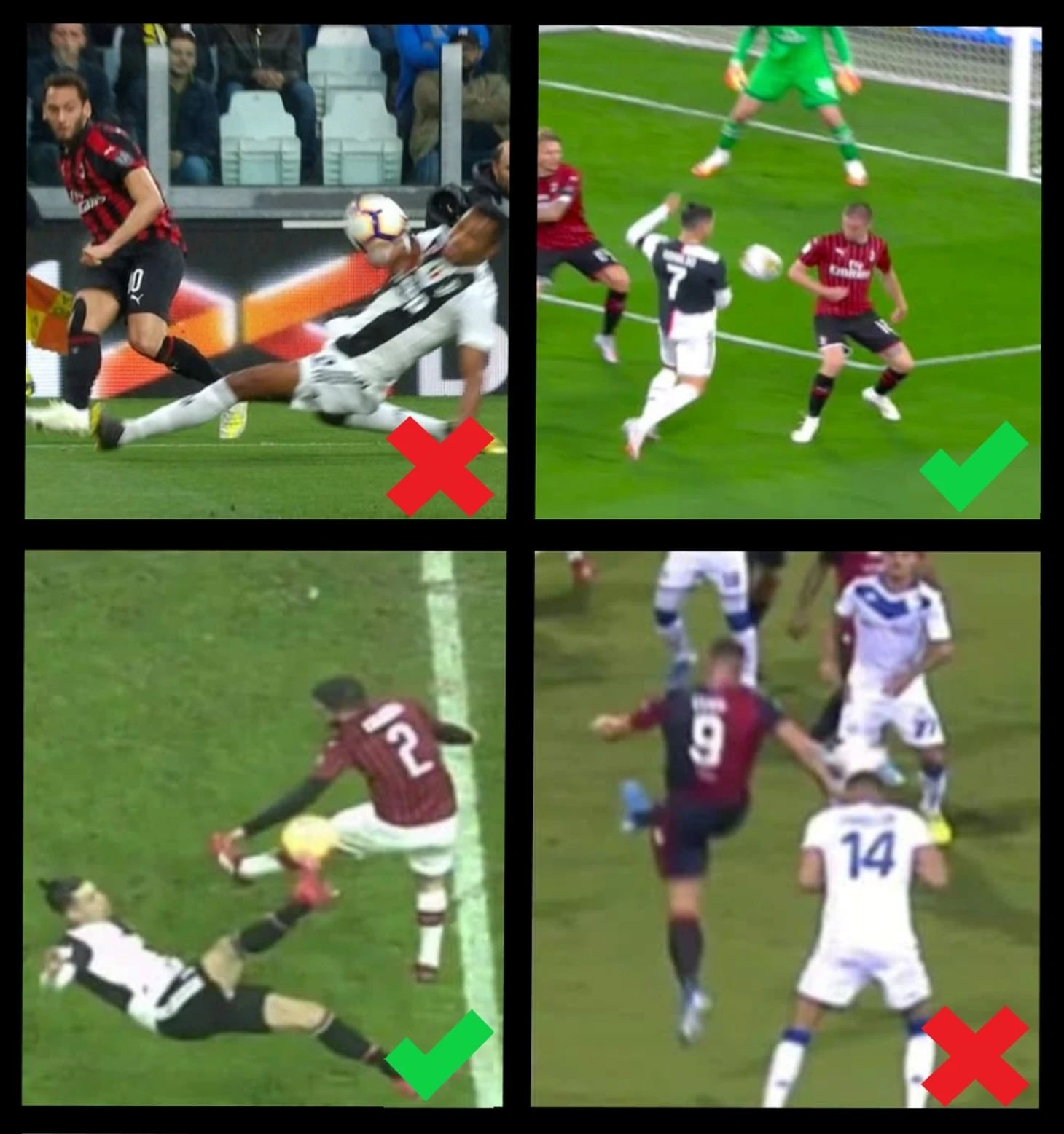 3. "Милан" - "Юве", февраль 2020. Мяч после удара Роналду практически в упор попадает в руку Калабрие, который не видел эпизода и никаким образом не мог убрать руку - это пенальти;