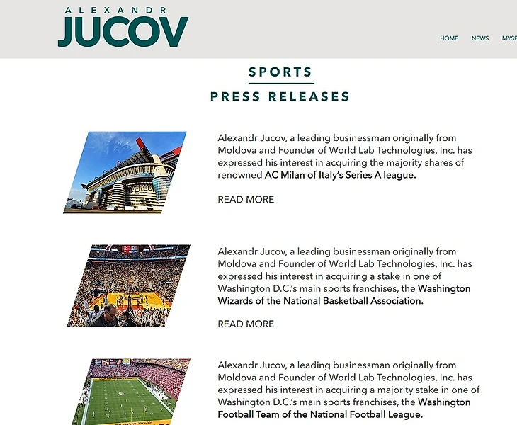 Сайт и профили в соцсетях начали работу с громких заявлений о том, что Жуков готов делать многомиллиардные инвестиции в приобретение американского подразделения сервиса TikTok. Также в августе на сайте сообщалось, что он интересуется покупкой «Милана», баскетбольного клуба «Вашингтон Уизардс» и «Вашингтон» (клуб по американскому футболу).