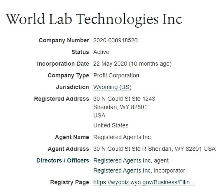 Найти каких-либо данных о Жукове не удалось, так же как и о компании World Lab Technologies. Единственное, что удалось выяснить: компания с таким названием была зарегистрирована в США в штате Вайоминг 22 мая 2020 года.