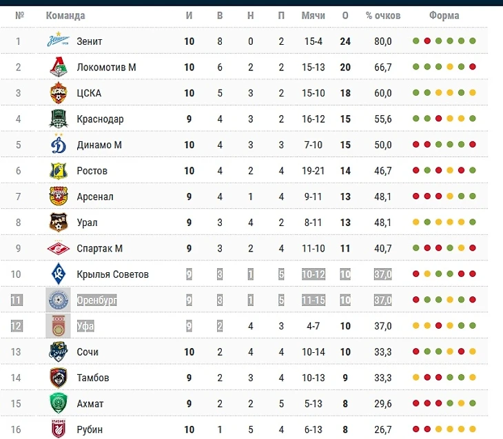 Что мы вообще знаем о ПФК "Сочи"? Клуб, который полтора года назад сменил питерскую прописку, а также название, дебютировал в РФПЛ в этом сезоне. Дебют нельзя назвать успешным, даже несмотря на несколько интересных матчей бело-синих в первой половине чемпионата. Здесь можно отметить выездную нулевую ничью с ЦСКА, которую, даже несмотря на неудаление Ивана Милодиновича за удар в лицо Федора Чалова, вовсе нельзя назвать отскоком, поскольку "Сочи" очень грамотно выстроил свою оборону против подопечных Виктора Гончаренко, яркую выездную победу над московским "Динамо" с голом Александра Карапетяна на последних минутах, упущенную ничью в стартовом туре (опять же в гостевом матче) с московским "Спартаком", где автор победного гола Самуэль Жиго принес победу красно-белым, нарушив в момент забитого мяча правила против опекавшего его Евгения Песегова, ну и, разумеется, уверенную викторию в Казани (не смейтесь, но это опять случилось на выезде) над "Рубином" со счетом 0-3 и голом Федора Кудряшова своей бывшей команде. Становится очевидным, что "Сочи" образца осени 2019 года относится к той нетипичной группе аутсайдеров, которым в гостях играть куда удобнее, нежели дома. Это подтверждает и таблица (см.ниже) гостевых игр этого сезона, где "барсы" находятся на 13-ом месте с десятью очками. Причем эти же 10 очков имеют более опытные в баталиях РФПЛ "Крылья Советов", "Оренбург" и "Уфа" (проведя, правда, на одну гостевую игру меньше). Плюс ко всему, сочинцы потерпели за всю первую половину чемпионата только одно крупное поражение от "Краснодара" в 3 туре (3:0)