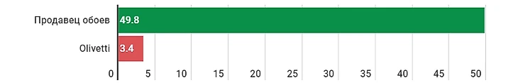 Потенциальная аудитория новостей о продавце обоев и Olivetti (млн человек).
