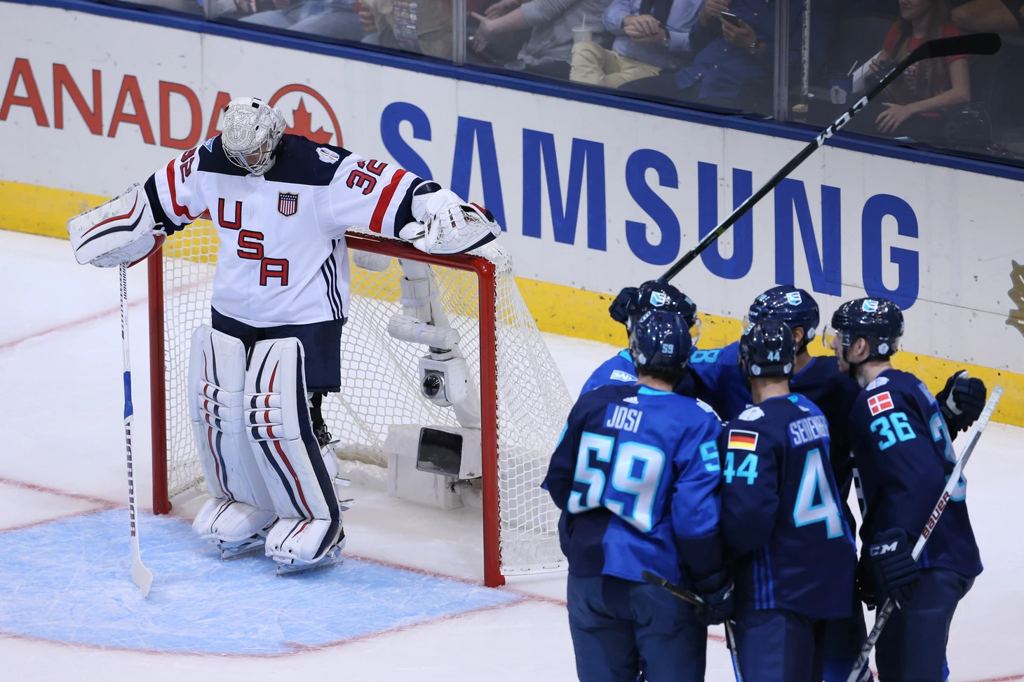 Пропустив 4 безответные шайбы от Коннора Макдэвида и его партнёров, подопечные Крюгера переубедили последних оптимистов, веривших в существование интриги в группе США и Канады, и вынудили европейских журналистов единогласно признать этот концепт неудачным. На контрасте с резвыми нападающими Северной Америки возрастные Нильсен и Габорик выглядели слишком инертными и были похожи на любителей из пивной лиги, только что вышедших на лёд после долгого перерыва. Единственным форвардом, пытавшимся навязать борьбу скоростным оппонентам, оказался только что протащивший сборную Германии на Олимпиаду в Пхенчхане двадцатилетний Леон Драйзайтль, но тогда он был слишком далёк от уровня MVP сезона, и его бешеная активность ни на что не влияла.