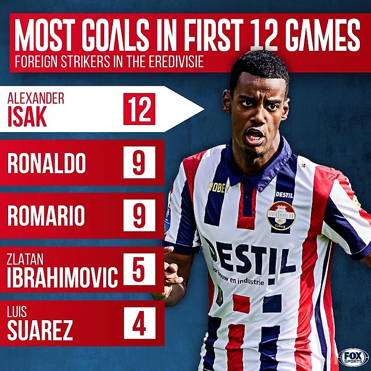 Такого мощного старта не было ни у одного иностранного игрока за всю историю существования Эредивизи – даже великому бразильскому форварду Роналдо удалось отличиться лишь 9 раз в стартовых 12 матчах. В итоге за 16 матчей Исак забил 13 мячей и произвел фурор в Нидерландах.
