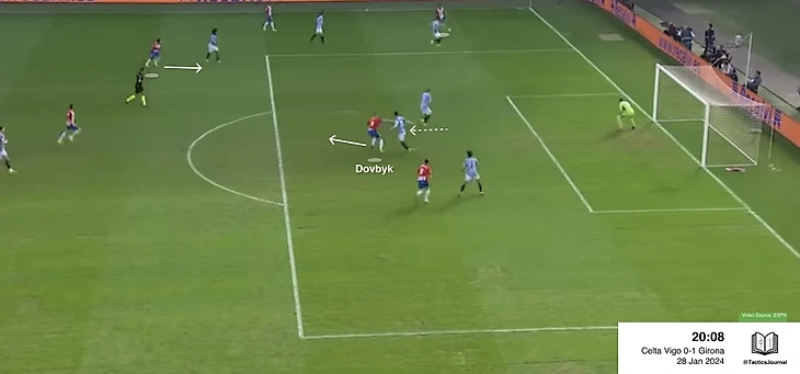 Украинец чрезвычайно атлетичен для своего роста и отлично «ловит» тайминг забегов за спины центральных защитников соперника. Он остаётся высоко, чтобы извлекать выгоду из передач из глубины от таких игроков, как Блинд и Алейкс Гарсия. Участие Довбика в контроле мяча ограничено, но это не из-за его неспособности. Напротив, он довольно эффективен в своих касаниях и мастерски держит мяч, чтобы объединяться с такими игроками, как Савио и соотечественником Виктором Цыганковом. Как показывает статистика его игровых качеств, самым сильным преимуществом Довбика, несомненно, является его голевое чутьё, но гораздо интереснее то, насколько хорошо он действует в штрафной площади. Довбик отлично покзаывает себя в борьбе за мяч в штрафной площади соперника.