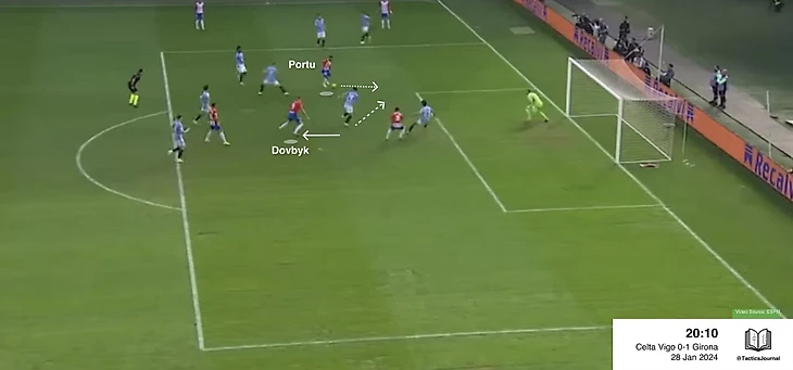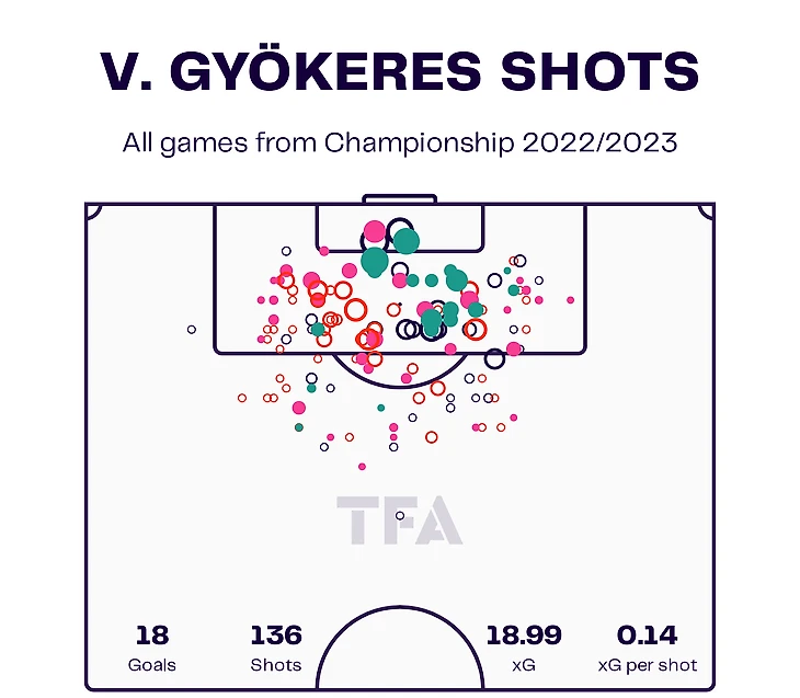 Как и предыдущий Довбик, Дьёкереш только недавно перешёл в нынешний клуб, в котором он сейчас блестает. «Спортинг» купил шведа за 21 миллион у «Ковентри Сити», о котором я в своём блоге уже писал. Сейчас его стоимость более 50-ти миллионов евро, а его празднование и фамилия - у всех на слуху. В этом сезоне у Виктора средняя оценка 8.0 в португальском чемпионате. Даже выступая на позиции классического форварда, Дьёкереш отдал 10 ассистов в лиге. За 24 матча, при хА в 20 голевых действий, Дьёкереш сделал целых 32. Также, он забил 6/7 пенальти в этом сезоне. Аморим также привил ему умение двигаться верно в прессинге, и правильно бороться за мяч, выбирая верные позиции. Дьёкереш не просто сильный завершитель, но и отлично действует в подыгрыше. Открыть зону, потянув за собой защитника или даже двух, чтобы дать пространство для товарища по атаке. В коротком пространстве сделать ложный забег для точного кросса с фланга на напарника Виктора.