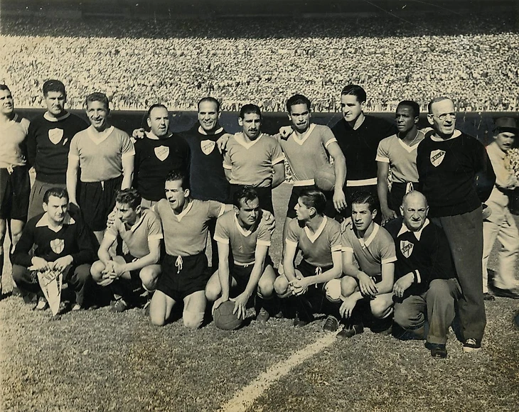 4-й Чемпионат Мира был проведён в 1950-м году в Бразилии. Формат, по сравнению с нынешним, был уникальным. 4 группы по 4 команды, а в финальной стадии 1 группа из четырёх команд, никаких матчей на вылет. В финальную группу вышли Уругвай, Бразилия, Швеция и Испания. В 1-ом туре финального раунда Бразилия разгромила шведов 7:1, а Уругвай с Испании поделили очки, 2:2. Во 2-ом туре Уругвай выиграл Швецию 3:2, а Бразилия вновь разгромила соперников, 6:1 с Испанией. В последнем туре, который решал почти всё, Швеция выиграла Испанию, и взяла 3-е символическое место. А вот в финальном матче в Рио-де-Жанейро была настоящая история. Перед игрой Бразилия опережала команду Уругвая на одно очко, и поэтому бразильцев устраивала ничья, в то время как Уругваю нужна была только победа. На стадионе собралось аж 199 с половиной тысяч человек. По сей день это рекорд посещаемости футбольного матча за всю историю. Это должен был быть грандиозный праздник для бразильцев, но пути Господни неисповедимы.