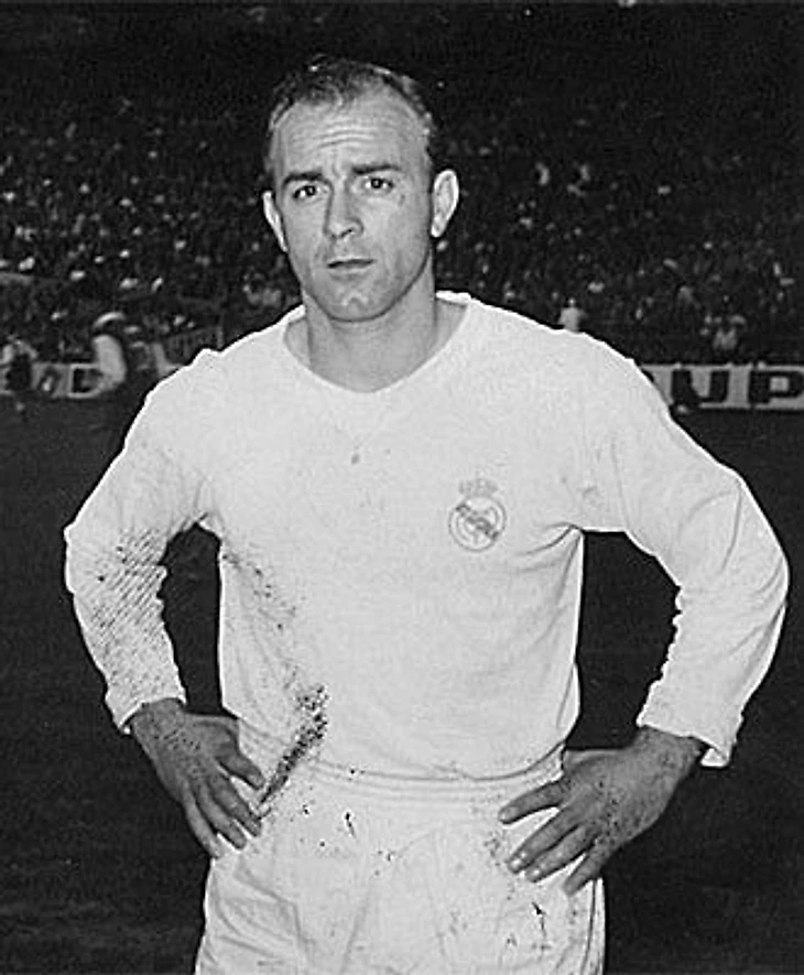 Об этой легенде можно писать бесконечно. О его карьере, наследии. Сам Альфредо - итальянского происхождения, однако у него есть и французские, и ирландские корни. Его отец, тоже Альфредо, был одним из соучредителей «Ривер Плейта». Начал играть в футбол он уже с четырёх лет, а в юношеском возрасте, пройдя просмотр, попал в четвёртую команду «Ривер Плейта», за который он забил 49 мячей в 66 играх. Затем был переход-трамплин в колумбийский «Мильонариос», где Ди Стефано привлёк внимание европейцев. Дело в том, что с ним одновременно контактировали и «Реал» и «Барселона». Оба они достигли соглашений, поэтому после судебных процессов было решено: Ди Стефано сыграет 2 года за «Реал», а затем 2 за «Барсу», однако от такой поддачки каталонцы отказались, и Ди Стефано провёл 11 лет в «Реале». К вашему сведению, аргентинец 5 раз брал Кубок европейских чемпионов. Его именем названа награда лучшему игроку Испании, второй стадион «Реала», а ещё его памятник стоит около стадиона «сливочных» Сантьяго Бернабеу.