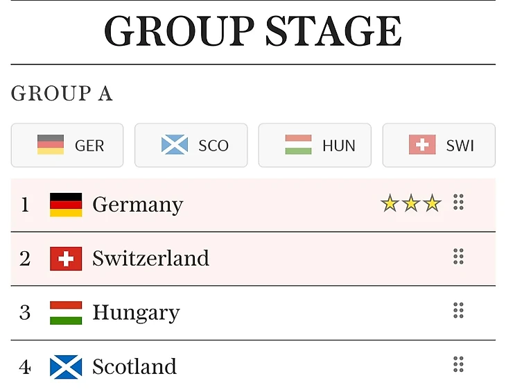 В группе традиционно учавствует страна-хозяйка турнира. Как я уже сказал, это Германия. Помимо немцев тут расположились сборные Швейцарии, Шотландии и Венгрии. Конечно, с ходу так и не скажешь, что группа интересная, однако сюрпризы здесь быть могут.