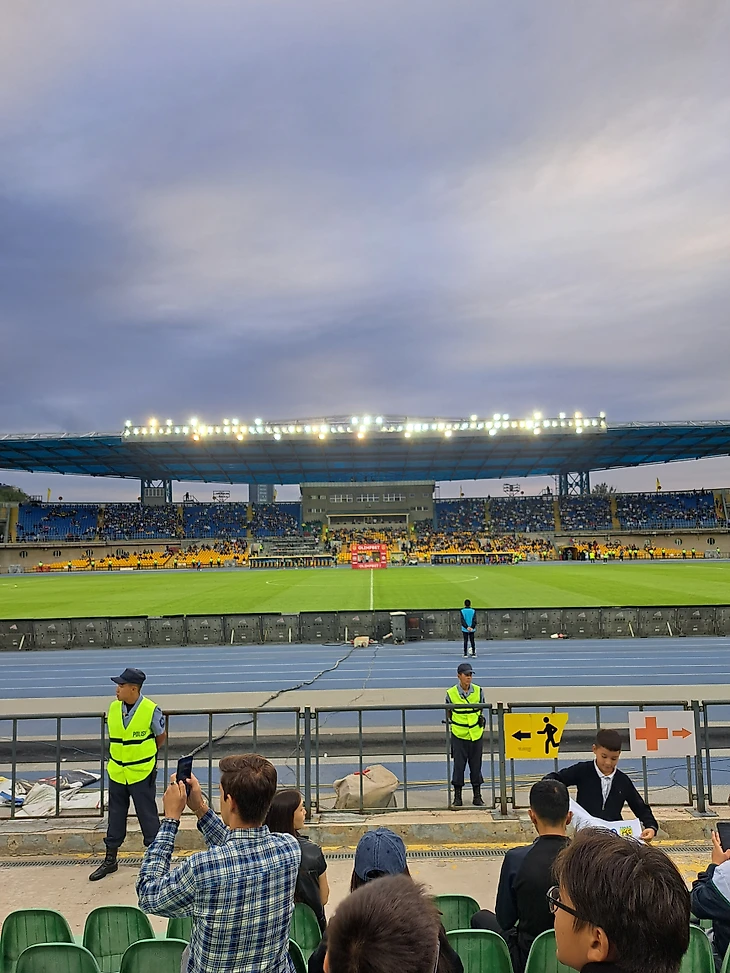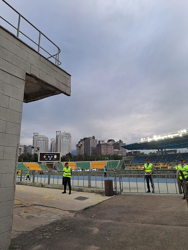 Как только я подошел к стадиону, я сразу же увидел толпы болельщиков «Кайрата», бивших в барабаны и кричавших командные кричалки, которые я выучил по ходу игры. У меня в руках была бутылка фанты, но проносить её на стадион запретили, а ещё каждого входившего на стадион тщательно осматривали сотрудники правоохранительных органов. Пить, всё же, хотелось, поэтому я купил в соседнем магазине пластиковый стакан 0.5 и перелил всё туда. Мне было даже приятно, что уровень безопасности на стадионе высок, и я мог чувствовать себя комфортно во время просмотра матча. Стадион у нас очень комфортный и уютный, пусть его вместимость всего 24 тысячи человек. Здесь, в Казахстане, мы визуально делим трибуны на 3 части: семейные трибуны - западная и северная, фанатская трибуна - за воротами, напротив главного входа, и трибуны гостей - прямо у входа с худшим видом. Семейные трибуны всегда полны, на них сидят нейтральные зрители, ну или болельщики одной из команд, но не такие уж ярые. Стычек здесь не бывает, а обзор на картину матча хороший. Фанатская трибуна - трибуна северная, на ней сидят ультрас, заряжающие кричалки и, в основном, учавствующие в беспорядках. Гостевая трибуна - самая неудобная для обзора, самая оттеснённая. Я же сел на семейные.