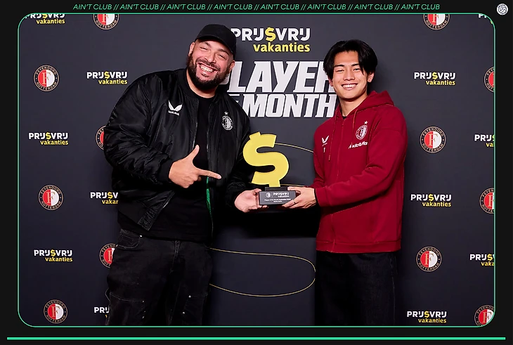 А здесь японец уже с трофеем лучшему игроку лиги в Октябре 2025
