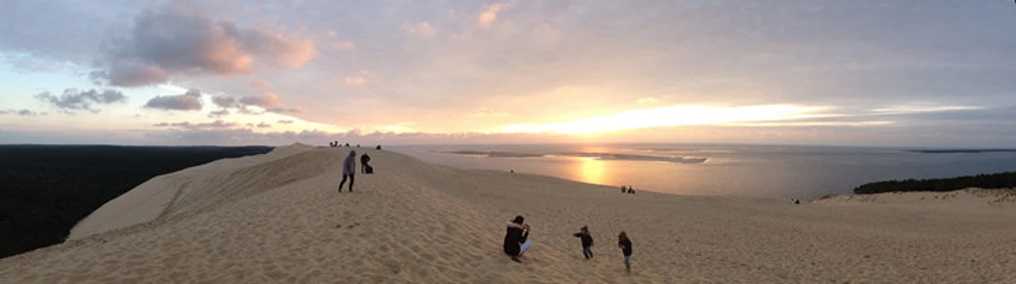 И, разумеется, поезжайте на Атлантику. В отличие от Ниццы или Марселя, Бордо не стоит прямо на побережье. Но морской дух здесь не выветривается никогда. До Атлантического океана, до самой большой в мире дюны, которая называется Пила (пишется – Pilat) от центра города всего около 50 километров. Поднимитесь на Пилу по пристроенным к лесному боку дюны деревянным ступенькам: вид сверху вознаградит усилия (фото мое).