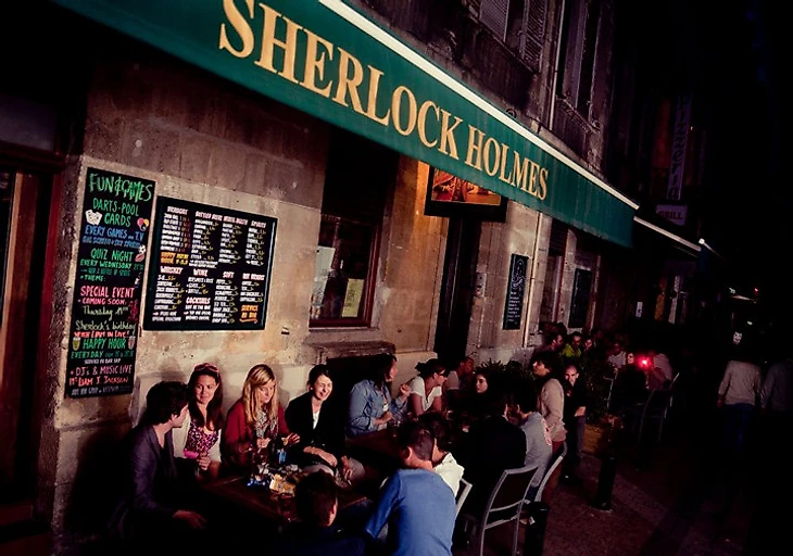 На самой ресторанной улочке города – rue Castelnau d’Auros можно найти заведения практически любого типа, от фаст-фуда с сэндвичами до ресторана с замысловатым меню. Венчает дело, если идти от т-образного перекрестка с другой пешеходной улочкой, Georges Bonnac, – отличный английский паб, с не требующим доказательств породы именем The Sherlock Holmes. Выбор напитков слегка замысловат, зато любители экспериментов будут в восторге: как от крафтовых сортов, так и от “бананового пива”, например. Немного странные “счастливые часы”, с 19:00 до 20:30 удобны как раз тем, что не пересекаются с happy hour других баров.