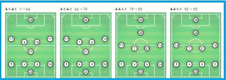 Действия в созидательной игре на половине поля соперника не приводили к должному результату, поэтому тренерский штаб вынужден был совершить ряд перестроений.