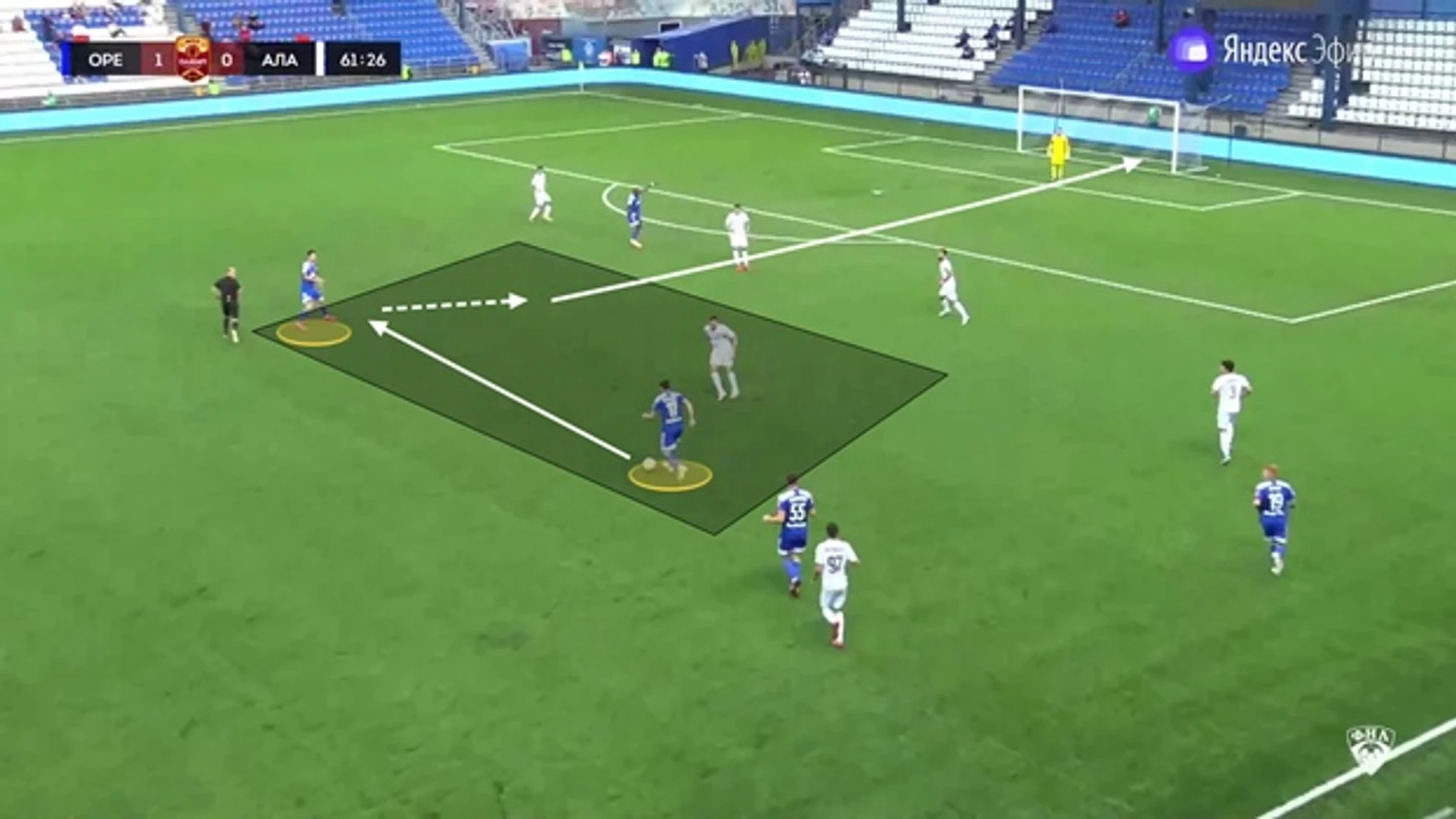 Нельзя сказать однозначно, что это самая проблемная зона владикавказцев. Но, по сути, она является опасной и удачной для бьющего. Например, в матче против «Оренбурга» ситуация 2 в 1 против Хосонова, а затем пропущенный мяч.