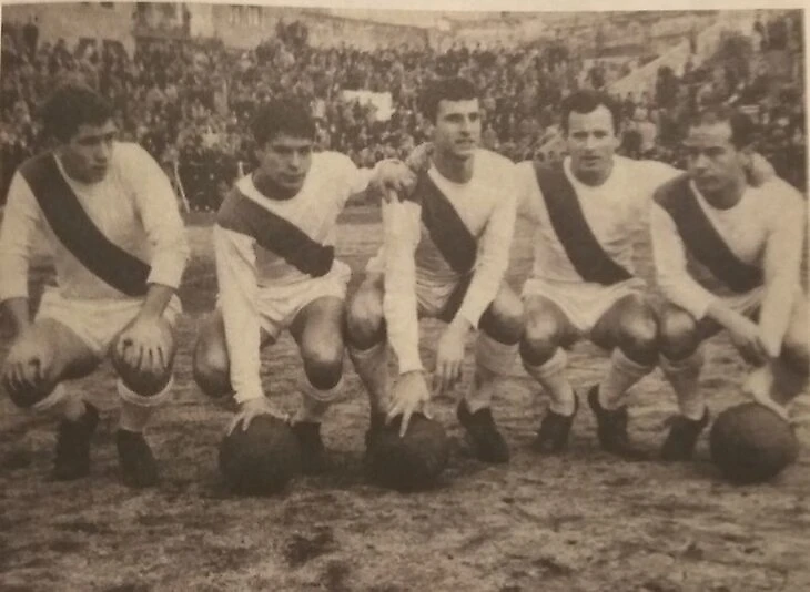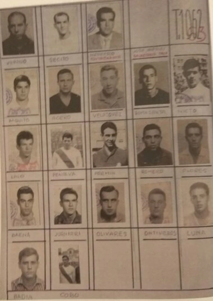 Стоят: Фермин, Оливарес, Флорес, Лало, Пеньялва, Кобо. Сидят: Асеро, Пакито, Ромасанта, Веласкес, Хурадо.