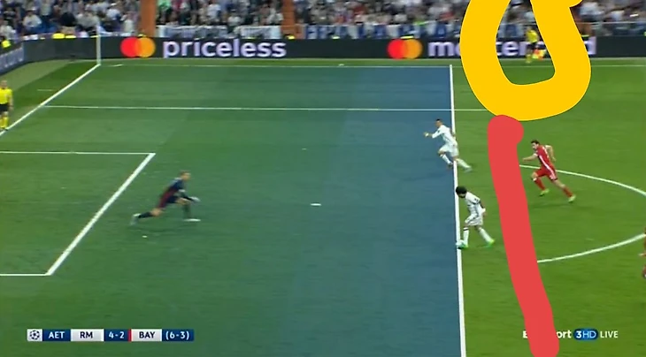Безусловно, это деморализовало Баварию. Но чтобы окончательно добить немцев, ибо теоретически им для прохода хватало одного забитого мяча, судьи проморгали еще один голевой офсайд. Чуть менее явный, но ОФСАЙДОМ от этого быть не перестающий ни в коей мере.