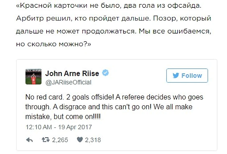 Заметьте: кроме мадридистов НИКТО не поднял бучу про 6:1 на Камп Ноу, никто не пытался оспорить этот результат. И как искренне радовались Джеррард, Фердинанд и Оуэн, когда Барса забила решающий мяч. Теперь же мы слышим крики "позор!" не только от нейтральных зрителей по всему миру, но и футболистов. Оуэн Харгривз, Михаэль Баллак, Кристиан Вьери, Йон-Арне-Риисе (последних двоих точно не заподозришь в симпатии к Баварии) выразили в твитере свое возмущение вчерашним произволом.