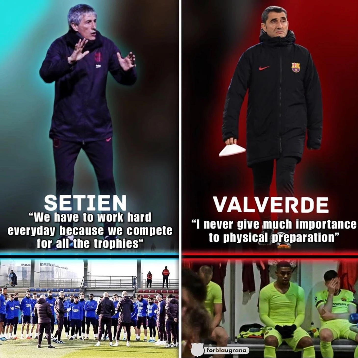 Думаю, удалось весьма красочно передать, в какой заднице находился клуб, когда его возглавил Кике Сетьен, и сколько ему придется разгребать после предыдущего рулевого. Первое, с чего начал новый мистер - гонять на тренировках расслабившихся лентяев как сидоровых коз. В этом заключается причина той невнятной физической формы, что сейчас демонстрирует большинство футболистов. По сути, команда прямо сейчас проходит необходимую предсезонку. Этот месяц ноги были тяжелыми, а мышцы усталыми. При этом уже сейчас Барса двигается значительно интенсивнее, чем при Муравье. Такой темп выдерживают далеко не все, и к примеру стало еще заметнее, насколько мертвы Ракитич и Пике. Как и то, насколько не годятся для комбинационного футбола Гризманн и Видаль. Впрочем, их сильнейшие качества тоже можно правильно использовать.