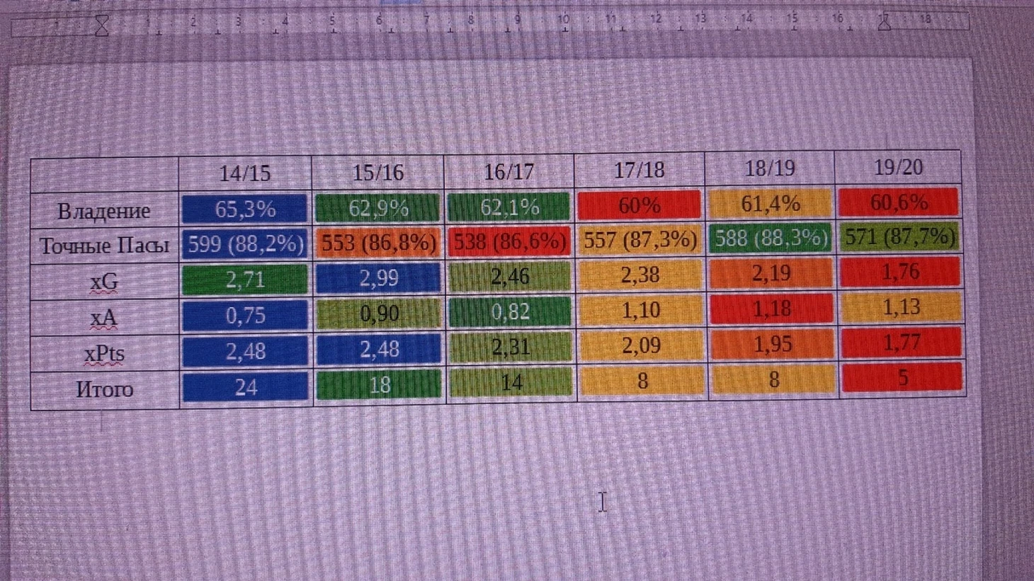 То ли до верхушки наконец дошло, что все-таки виноват, то ли недовольство фанатов начало приобретать угрожающие для их теплых кресел масштабы (наверняка второе), но баска попросили на выход. На его место был приглашен Кике Сетьен - сторонник идей Кройфа и Гвардиолы. Тренерам подобного типа нужна полноценная предсезонка, чтобы научить подопечных играть в свой сложносочиненный комбинационный футбол. Это не "абракадабра, выпускаю МСН" от Лучо, не "пасуйте на Месси, он что-нибудь придумает" от Вальверде. И, само собой, не тупая беготня с навесиками и забросами вперед, весьма популярные в современном футболе. Здесь нужна кропотливая осмысленная работа, к-я лишь со временем принесет. Но ждать их однозначно стоит, ибо когда они созреют - будет очень вкусно. Если кто-то наивно полагает, что с сеньором Эрнесто Барселона в этом сезоне могла хоть что-нибудь выиграть, посмотрите таблицу чуть ниже.