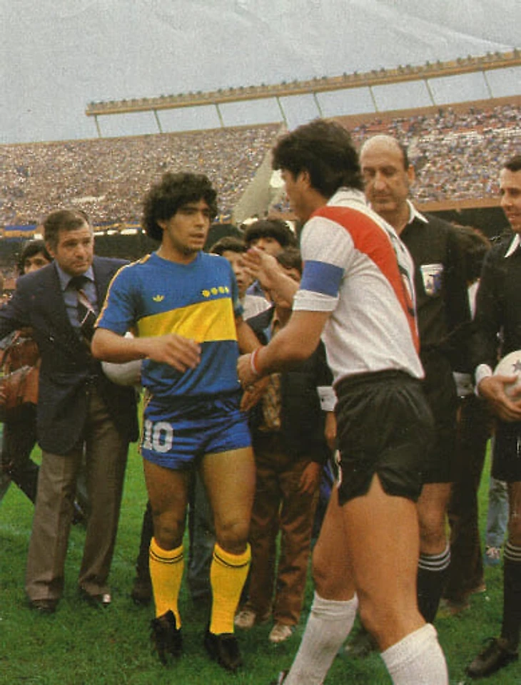 А вот и Суперкласико. Пассарелла в футболке «Ривера», Марадона – под десятым номером в «Боке»