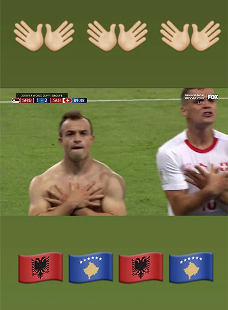 Жесты Шакири и Джаки вышли далеко за пределы футбола. В инстаграме игроков уже поддержала известная певица Дуа Липа, которая недавно выступала перед финалом Лиги чемпионов в Киеве. Она родилась в Лондоне, но ее родители – этнические албанцы из Косово.
