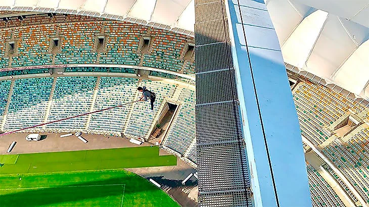 В основном местных развлекают аттракционами, и тут повеселее, чем в Кейптауне: можно объехать стадион на сегвее, прокатиться на платформе по дуге над ареной. Даже банджи-джампинг есть. А футбола нет. Плюс на прилегающей территории есть фактически целый молл – магазины с ресторанами и кафе.