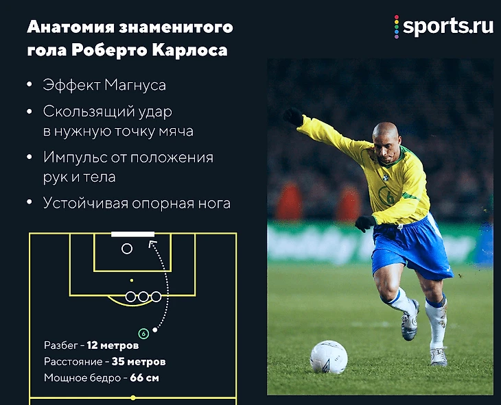 Анатомия того самого гола Роберто Карлоса: мощнейшие бедра (66-68 см в обхвате!), эффект Магнуса и чудо