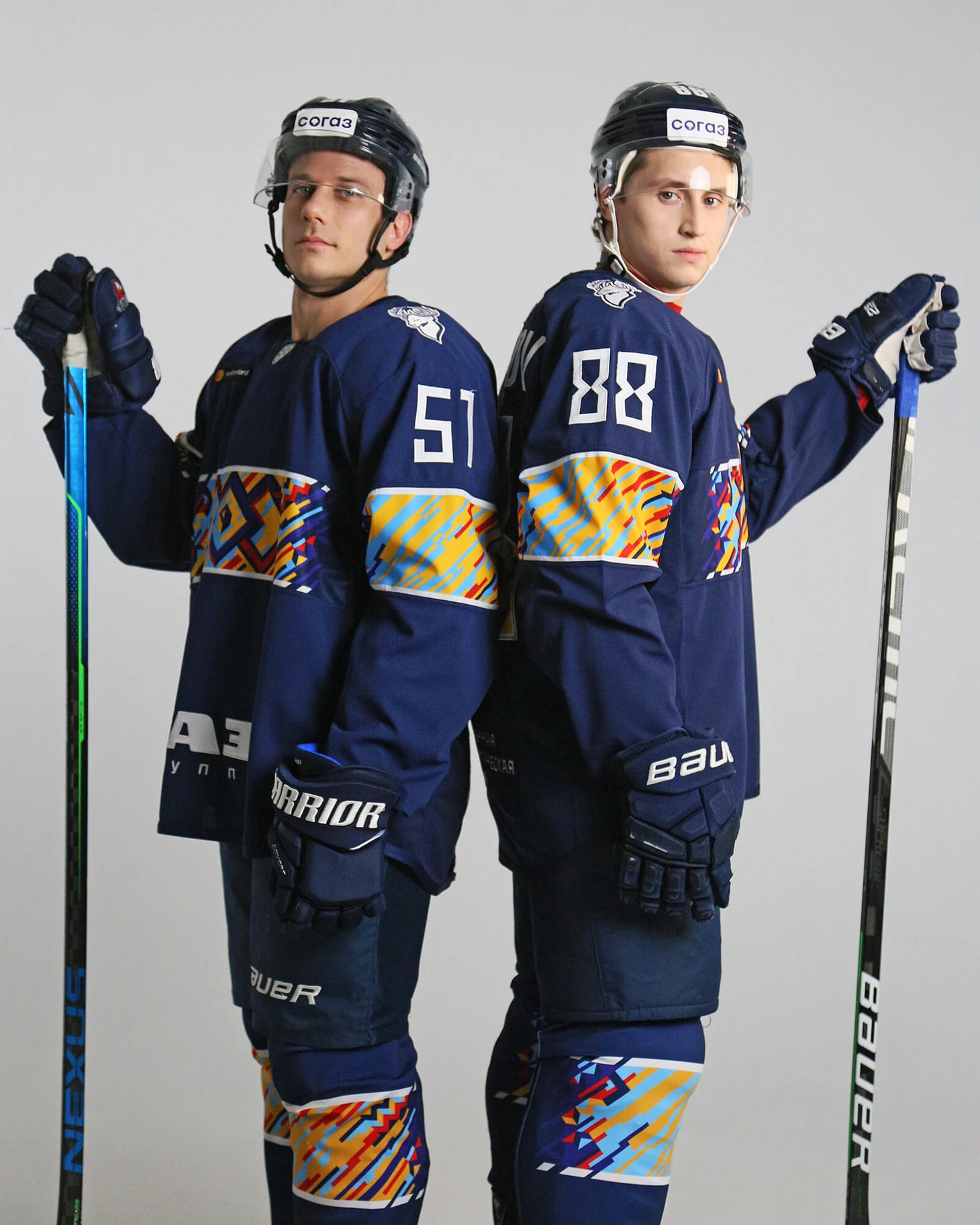 А вот для «Торпедо» синий цвет совсем не чужой. На хоккейной форме паттерн выглядит более цельным – за счет того, что появляется и на рукавах, и на игровых шортах.