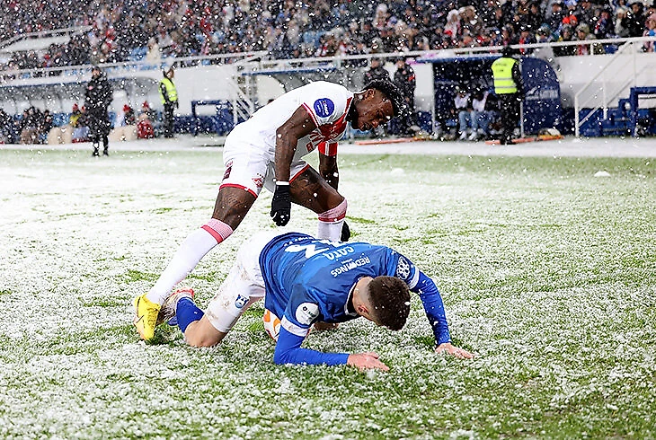 Под конец «Балтика» все же забила – Гедеон Гузина перекинул Максименко и побежал праздновать: нырнул в ту самую кучу снега, оставшуюся после перерыва. Но судья прервал перформанс свистком: офсайд.
