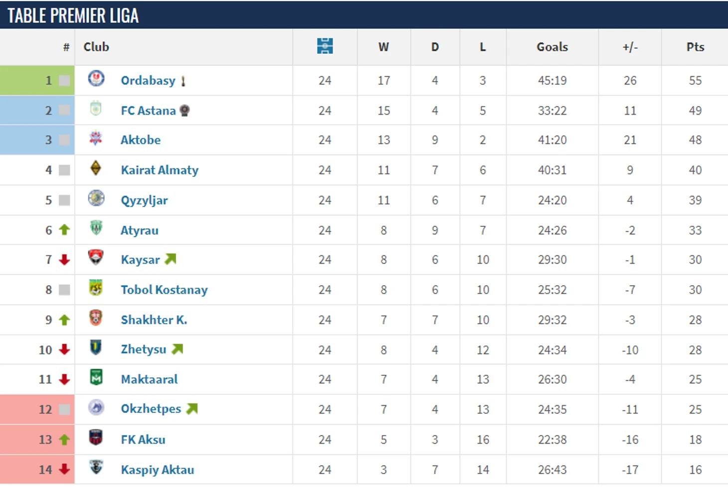 Как итог: только «Ордыбасы» забил больше и пропустил меньше «Актобе» за 24 игры в КПЛ.