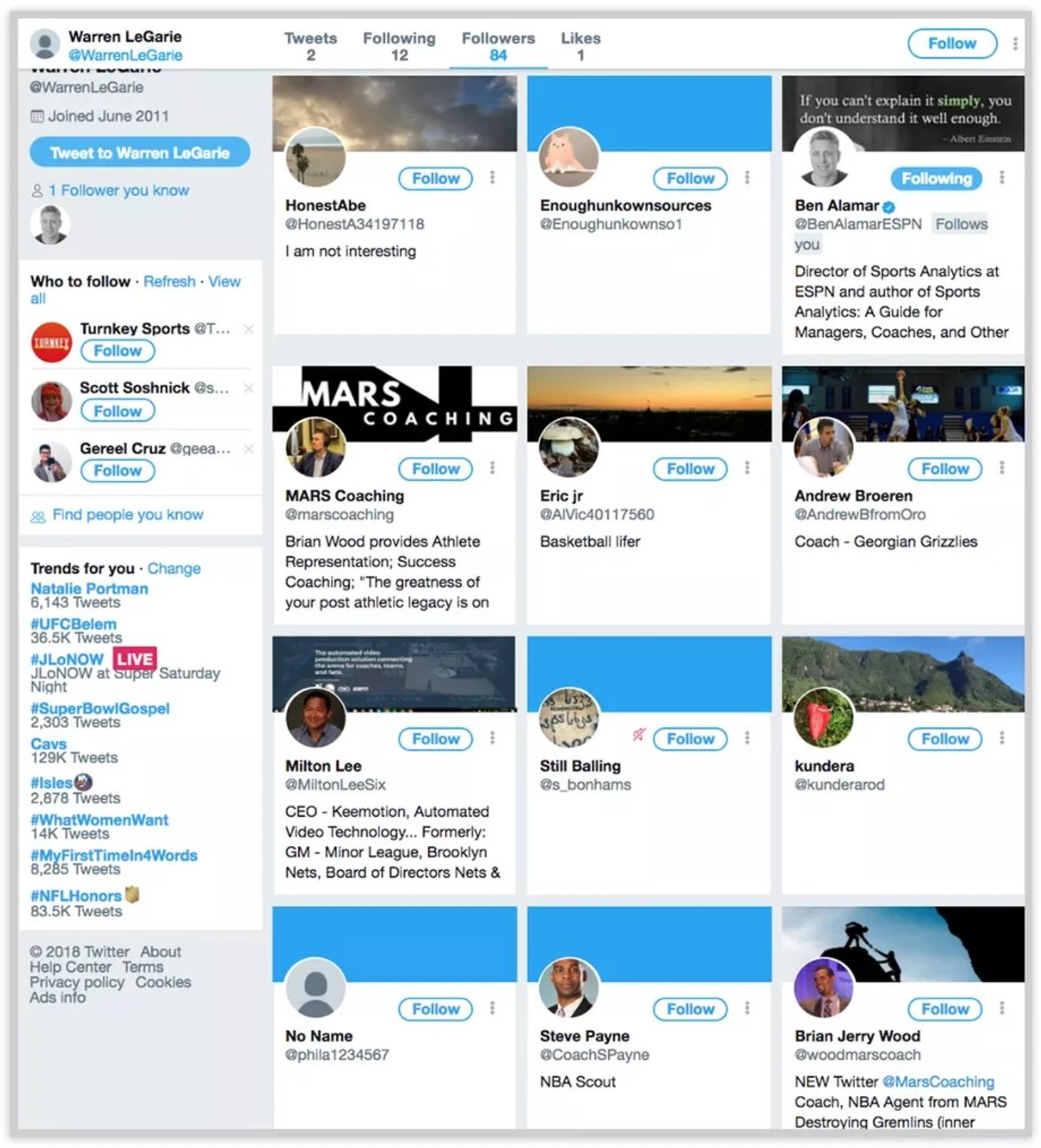 Все пять аккаунтов, в какой-то момент, были подписаны на профиль, использовавший имя Уоррена ЛеГэри (Warren LeGarie), основателя Летней Лиги НБА и агента, который представлял Коланджело в прошлом.
