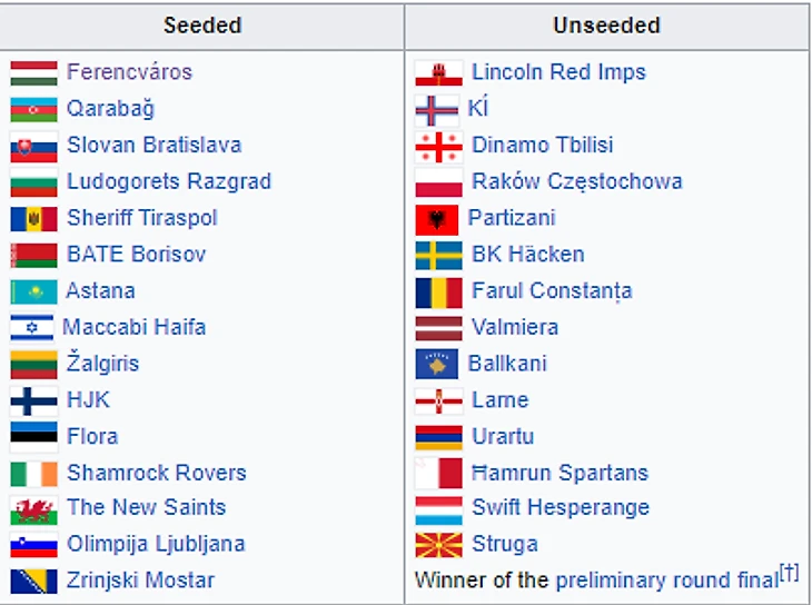 В этом раунде примут участие 30 клубов: 29 победителей из ассоциаций 22-51 (кроме Лихтенштейна, ведь у него нет своего чемпионата - только кубок страны), + победитель отборочного раунда, который пройдет позже, чем жеребьёвка, но победитель заранее по коэффициенту попадает к несеяным командам (подробнее об этом раунде можно узнать по ссылкам в конце поста в разделе «Источники»).