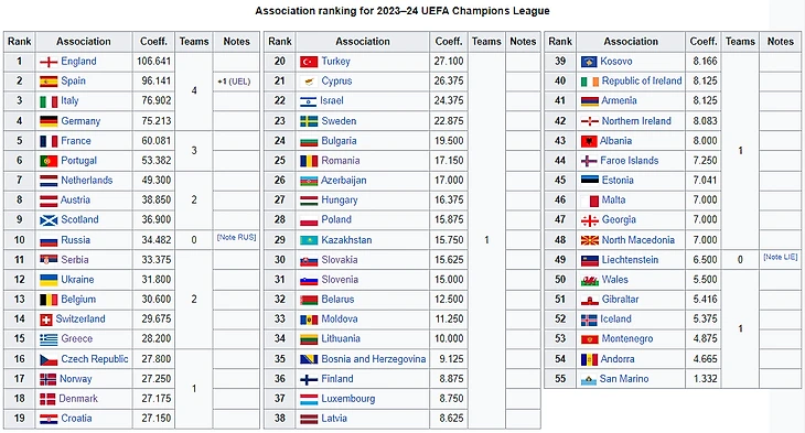 Коэффициенты клубов - участников 1 раунда, испольующиеся для их посева https://en.wikipedia.org/wiki/2023%E2%80%9324_UEFA_Champions_League_qualifying_phase_and_play-off_round