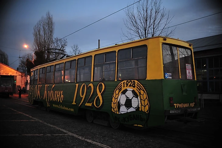 Теперь же, когда «Кубань» стала по-настоящему народным клубом, фанатское движение «Трибуна Юг» всерьёз взялась за популяризацию команды путём этакого «хэндмейда» общественного транспорта города. Оформление трамвая, как и троллейбуса, прошло по согласованию с Краснодарским трамвайно-транспортным управлением и исключительно за счёт собственных средств болельщиков «жёлто-зелёных».