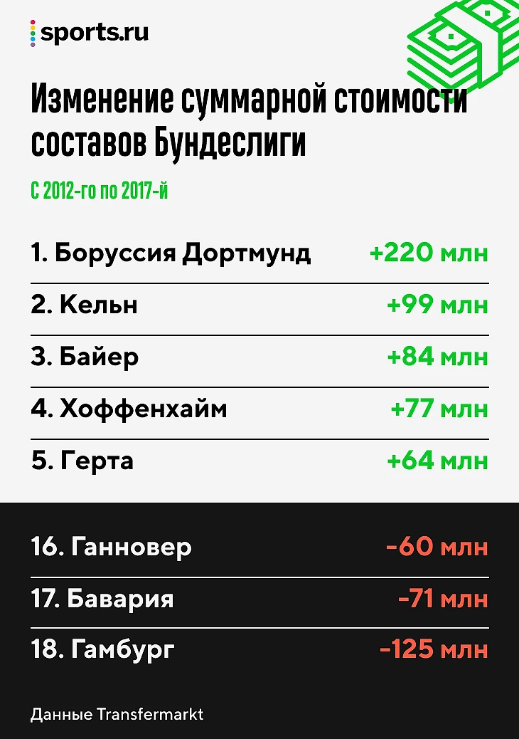 И не зря. Мислинтат помог Клоппу собрать чемпионскую «Боруссию», при нем клуб нашел в Японии Синдзи Кагаву и подписал его бесплатно, а через два года продал в «МЮ» за 16 млн евро. Суммарная стоимость состава «Боруссии» за 5 лет работы Мислинтата выросла на 182 млн евро (данные Transfermarkt, они очень условны, но в целом верно отражают рыночную мощь состава), при этом они вообще не потратились на трансферы – наоборот, были в плюсе (+38 млн евро). То есть футболисты прибавляли в цене, играя в футболке «Боруссии».