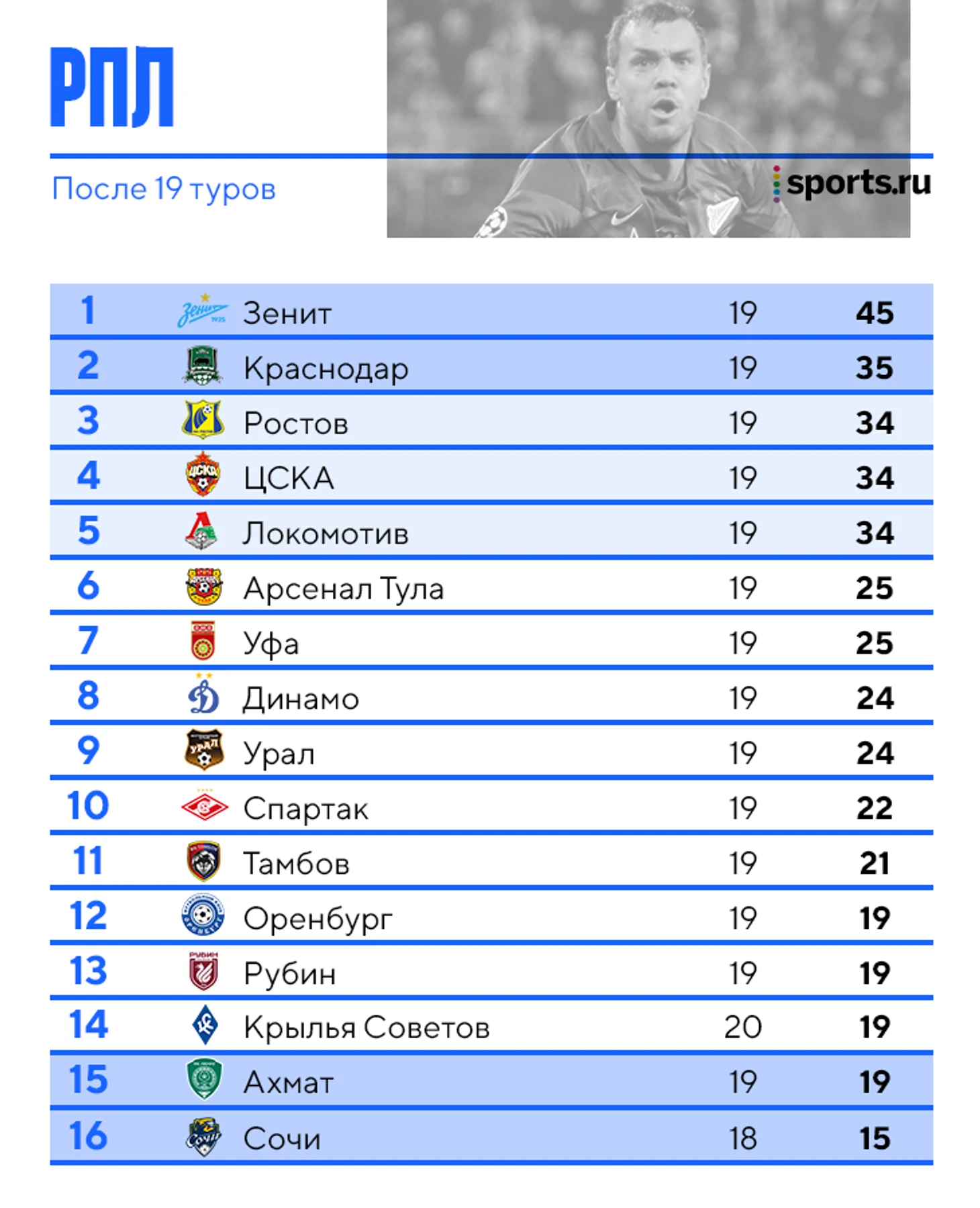 Первое, что бросается в глаза, – таблица не совсем соответствует турнирной. «Спартак» выше «Уфы» и «Урала», а «Ростов» замыкает топ-5. Сравните.