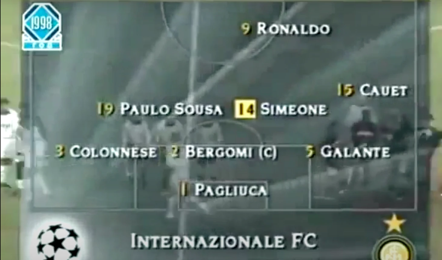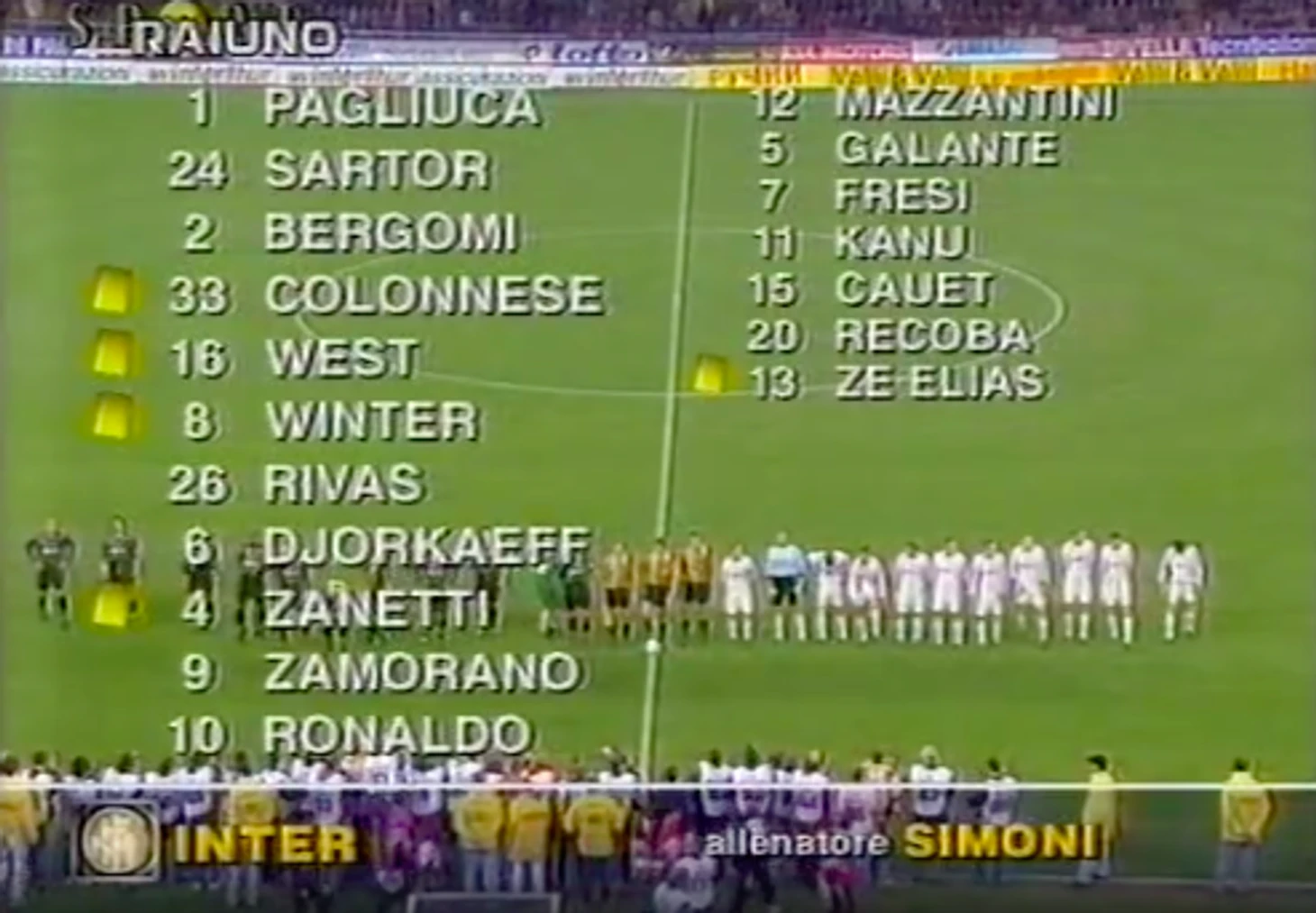 Под ним Саморано забил 14 голов в следующем сезоне – всего на один меньше, чем Роналдо, и, кстати, на три больше, чем суперзвезда Баджо. Примечательно, что Саморано надевал 1+8 даже на матчи Лиги чемпионов, хотя УЕФА уже тогда следил за всем строго и не позволял отходить от правил. Например, вот скриншот с ноябрьского матча против «Спартака».