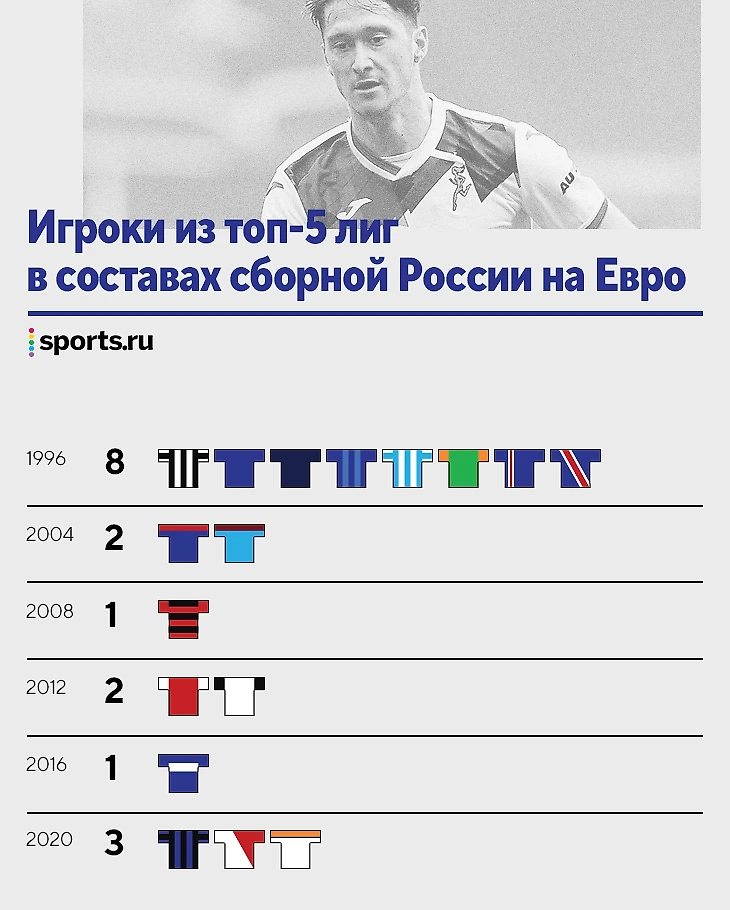 Сборная-96 не идет ни в какое сравнение с другими. И это мы еще не взяли Колыванова из «Фоджи» и Симутенкова из «Реджины», потому что они тогда играли в Серии В. Но вообще нынешний Евро – рекордный для сборной России в 21 веке по количеству игроков из топовых лиг.